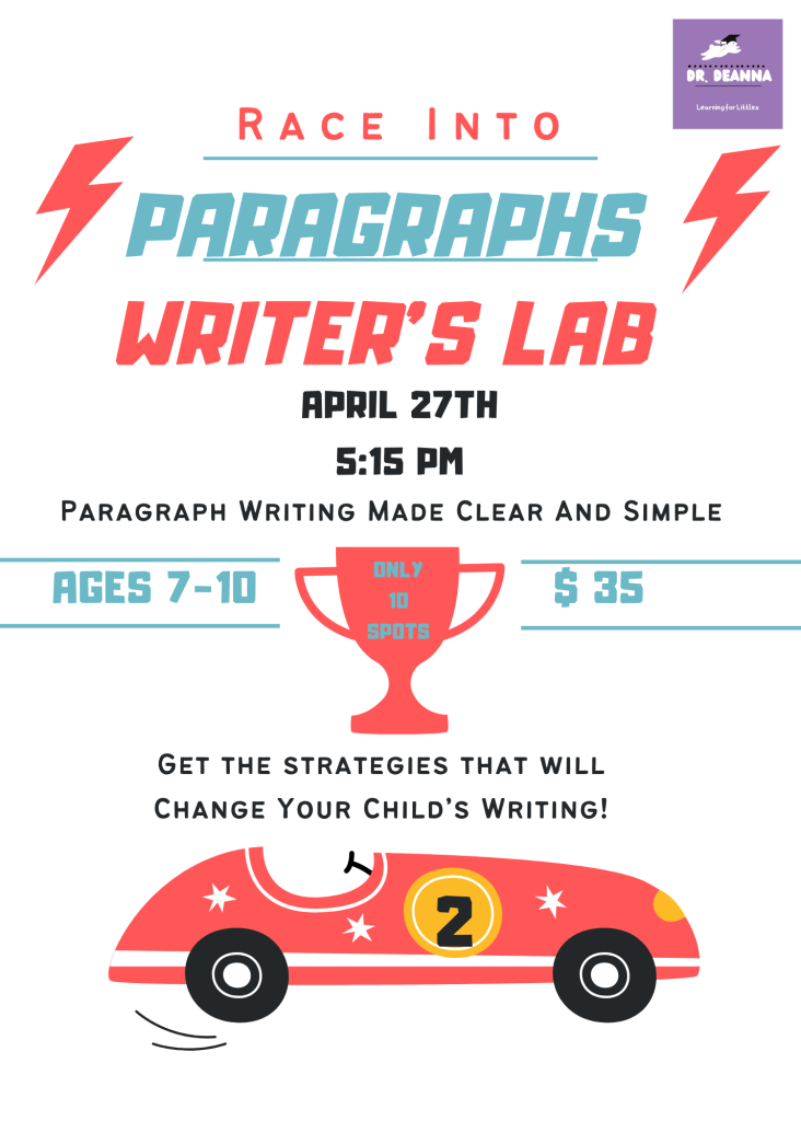 Is your child full of ideas but unsure how to get them onto paper? This small-group Paragraph Writing Lab is designed to help young writers learn how to organize their thoughts, expand their ideas, and write clear, confident paragraphs, without tears or overwhelm. Through engaging prompts, guided practice, and step-by-step support, students will learn how to turn sentences into strong paragraphs while building confidence and a love for writing. Perfect for emerging writers who need structure, support, and encouragement.